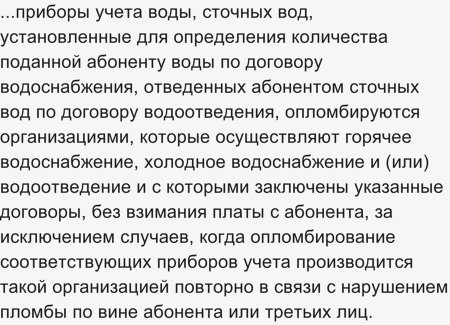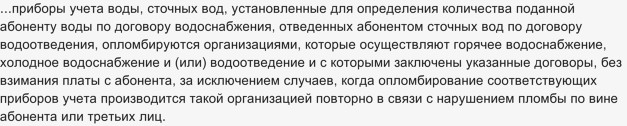 Бывает, что возникают аварийные ситуации и владельцу необходимо сорвать пломбу, то в таком случае нужно обязательно сообщить в абонентскую службу, что вы намерены сорвать пломбу, сообщить показания счётчика (с этого момента будет считаться потребление воды по норме расхода!), а после устранения причин или что вам необходимо сделать было, явиться в горводоканал и написать заявление на пломбировку счётчика.