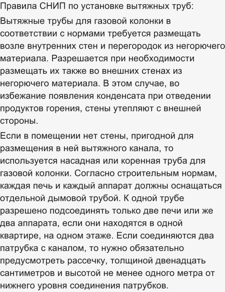 Мощность газовой колонки и диаметр трубы дымохода (тут есть прямая зависимость).