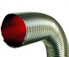 Если колонка находится левее, или правее отверстия под дымоход, то вместо уголков и жёсткой трубы, лучше приобрести вот такую нержавеющую гофру