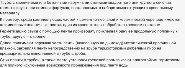 Все стыки заделываются таким образом, чтобы влага, которая будет стекать по трубе и по кровле не попала в стыки.
