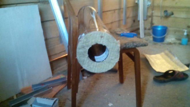 Далее монтаж отрезка трубы (патрубка) дымохода который проходит через стену + тройник.