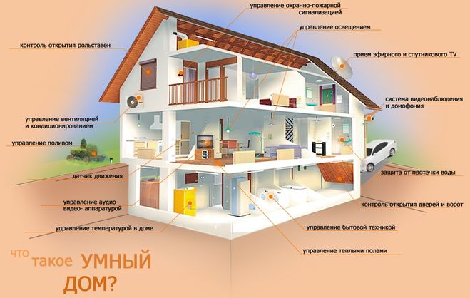 в которую входит целый комплекс различных устройств, главной целью которых является полная автоматизация обычных бытовых процессов, плюс эта же система отвечает за энергосбережение строения.