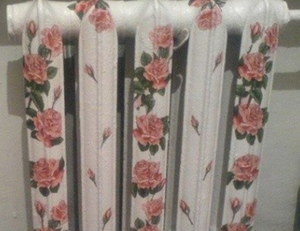 Для того, чтобы красиво оформить батареи понадобятся разные материалы, главное, выбрать красивый рисунок, а потом его плавно перенести на саму батарею.