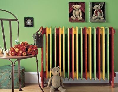 Батарею можно покрасить, а потом сделать в виде любимого сказочного героя детей.