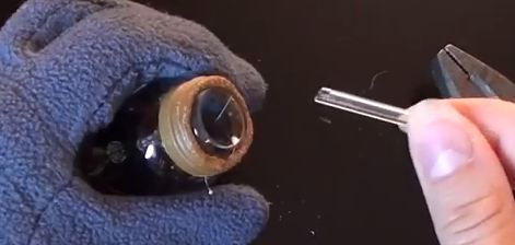 Ножом ломаем "пестик" из стекла, извлекаем его наружу.