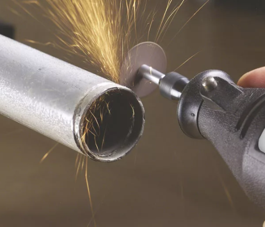 Сначала острыми кусачками-бокорезами откусил центральный контакт от провода идущего в лампочку. После этого дремелем с абразивным отрезным диском, аккуратно разрезал цоколь по вдоль оси лампы. Дремель с с отрезным диском, это вот такое устройство -