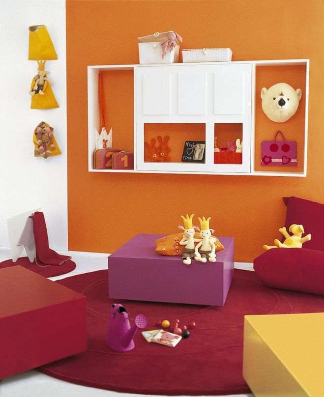 Если брать красный и оранжевый цвет для интерьера детской комнаты, то здесь нужно немного с опаской относиться к таким оттенкам, ведь они могут очень сильно влиять на ребенка, раздражать его, делать агрессивным.