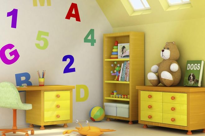 Детскую комнату можно оформлять разными цветами, так например, для солнечной стороны можно выбрать зеленый оттенок, а для стены, на которую попадает мало солнечного света - персиковой или желтой.