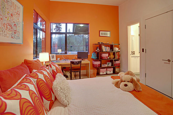 Оранжевым цветом должно быть лишь несколько предметов в интерьере комнаты, так как этот оттенок способен переутомлять. Вот поэтому психологи не советуют использовать этот цвет при оформлении детской.