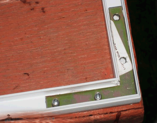 С наружной стороны рамы крепим наш каркас с сеткой вот на такие прижимы -