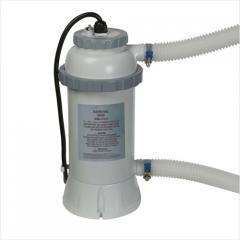 Для надувного бассейна не все способы нагрева воды подходят. Дело в том , что полимеры и каучуки входящие в материал из которого изготовлен надувной бассейн при воздействии горячей воды могут потерять свои свойства и бассейн будет поврежден. Единственный выход в данной ситуации это применение проточных электрических водонагревателей. Мало того выпускаемые в настоящее время проточные водонагреватели еще и дезинфицируют воду в бассейне. Вот один из таких водонагревателе и стоит он около 2 тысяч рублей . Есть и те , которые стоят 800 рублей.