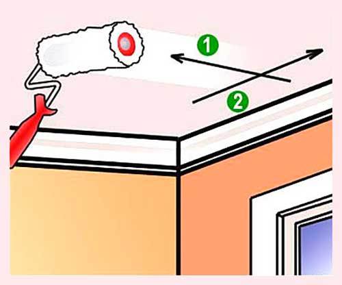 В районе потолок-стена и в углах можно красить кистями.